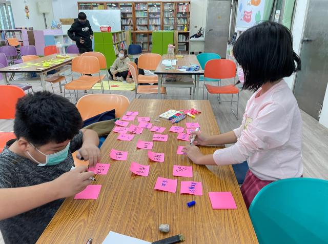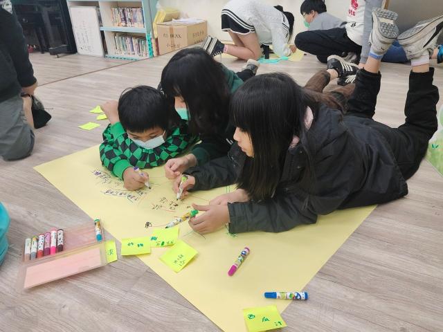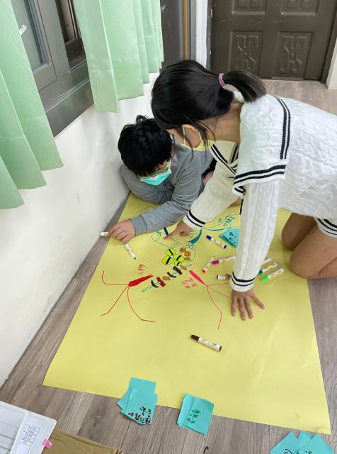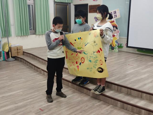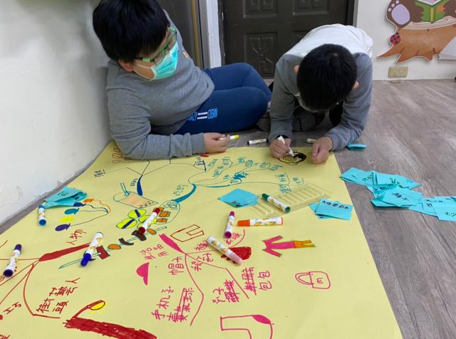 課程中老師引導學生善用聯想法,一次可以記憶20多項物品跟文字,其中有九宮格聯想法、圓形的聯想法,還有介紹速讀法,透過早上課程,下午則進行分組完成心智圖。